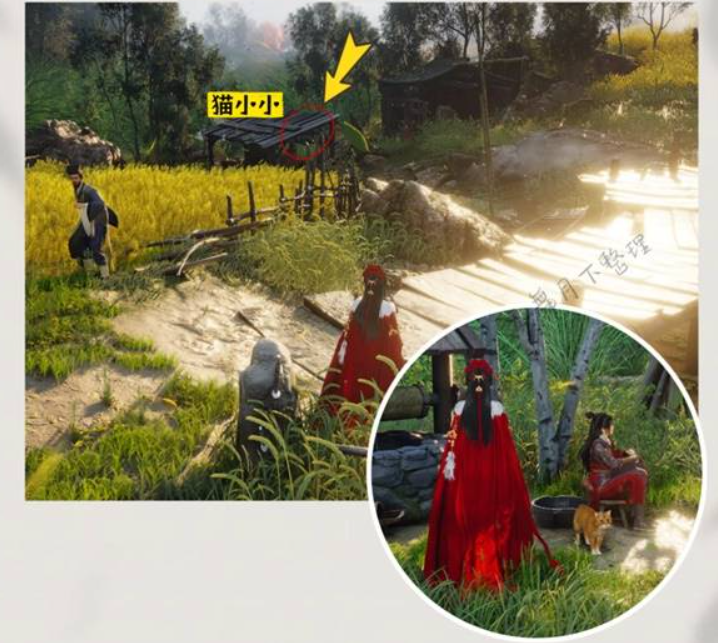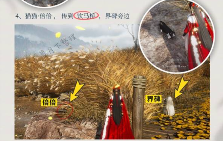 传送到饮马桥,猫咪就在界碑旁边。