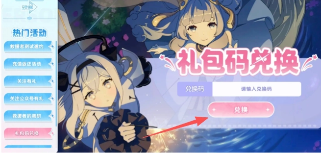 1、启动空灵诗篇游戏并进入主界面,接着在左侧的活动界面里找到并选择礼包码兑换选项。