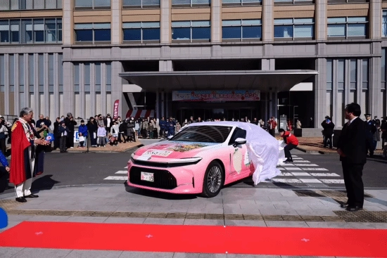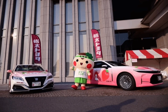 丰田在1月18日栃木县厅举办的“草莓王国栃木日”活动中,正式揭晓了这款独一无二的孤品车型。栃木县知事福田富一(Fukuda Tomiichi)特意穿上“草莓王国国王”的戏服现身发布仪式,还亲自为新车站台。相关图片如下: