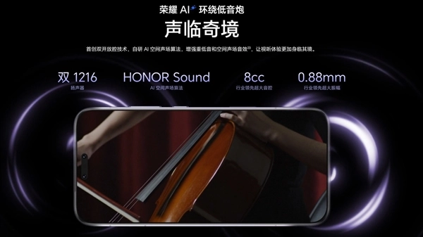 音频系统由两颗1216大尺寸扬声器组成,单体振幅达到0.88mm,并配合一体式音腔设计,音腔容积约8CC,整体外放效果更具层次感。