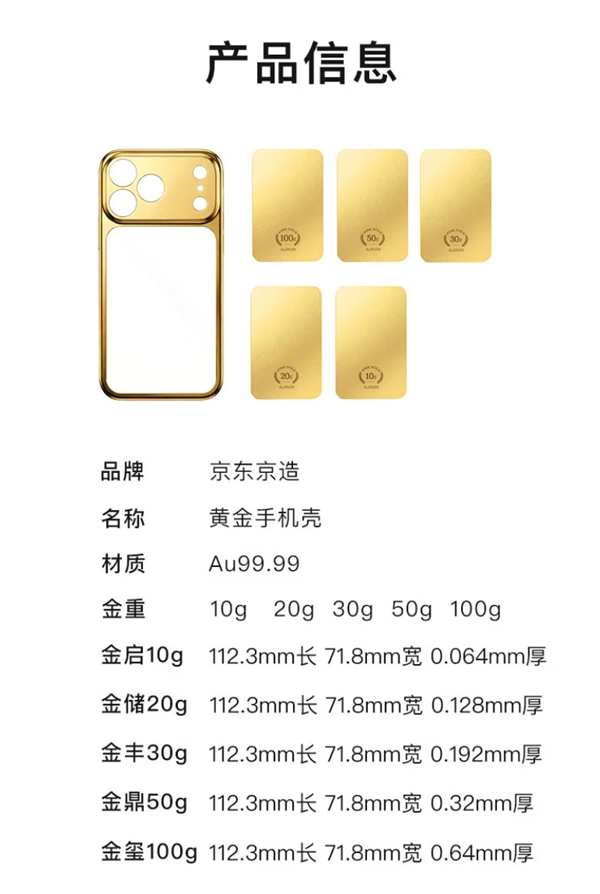 1月21日消息,京东京造自营投资金旗舰店推出了一款Au99.99黄金材质的手机壳产品,其起售价为11299元。