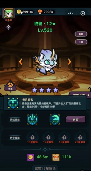 3、1技能(功能型技能):主要用于辅助上debuff或补伤害,优先级低于前两个技能,养成时可延后升级。