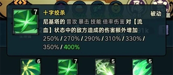 2、误区2:无流血挂件强行用尼基塔。没有布鲁诺/伊丽莎白时,尼基塔2技能无法触发增伤,输出不如普通英雄,建议先培养挂件再上尼基塔。