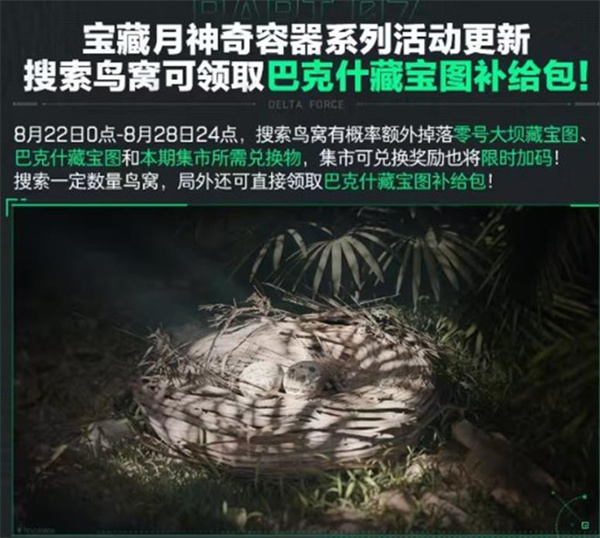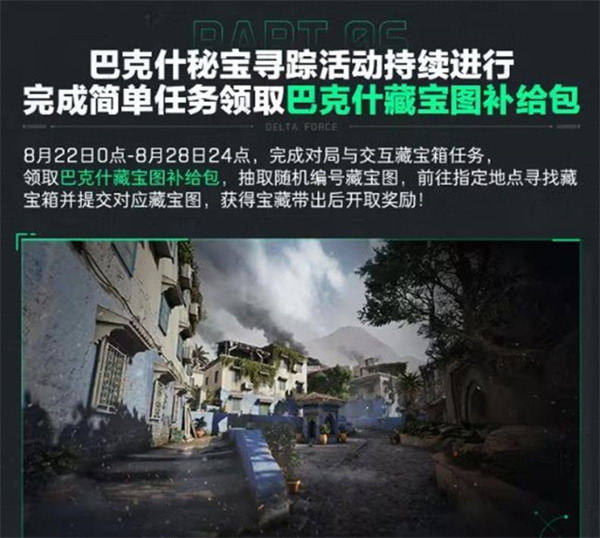 巴克什秘宝寻踪:完成对应任务后可领取藏宝图补给包,随后前往指定区域找到藏宝图并提交,即可获得相应奖励。