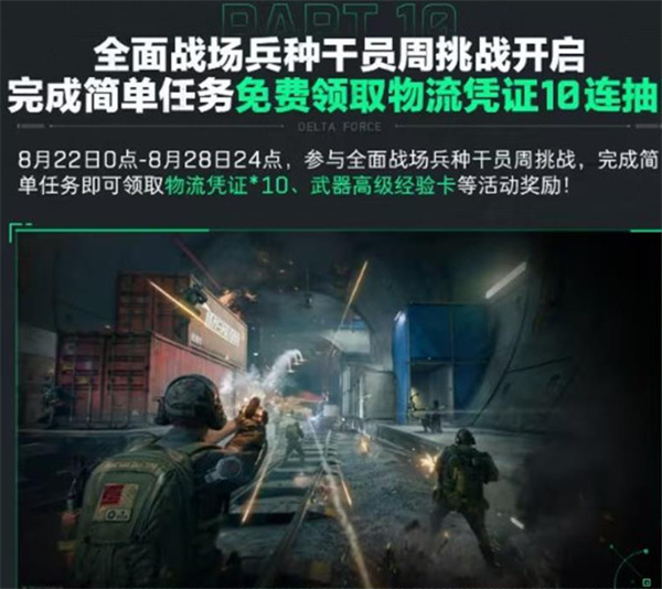 模式专场:贯穿、烬区围攻模式限时开启,参与即可获取物流凭证和经验卡。