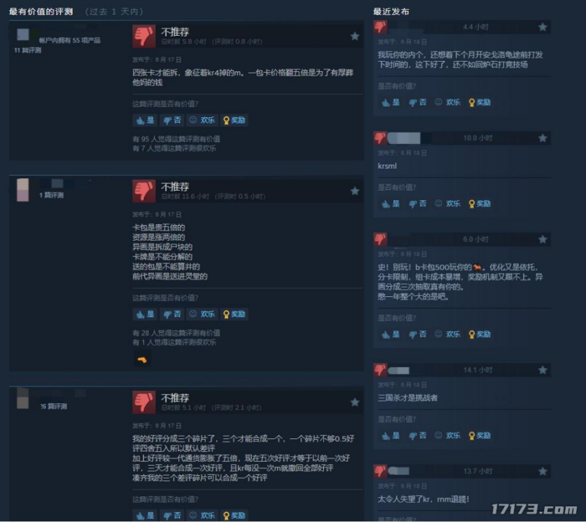 在Steam海量差评中间,玩家主要诟病游戏经济与养成的系统失衡——原先一包只卖100金的卡包,现在要卖500一包。