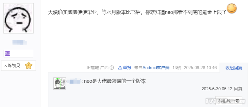 值得注意的是,一些曾体验过NEO韩服的玩家指出,当前巅峰服的高人气可能只是暂时现象,因为大漠版本毕业难度较低,平民玩家与土豪之间的装备差距不大,才给到了平民玩家的生存空间。