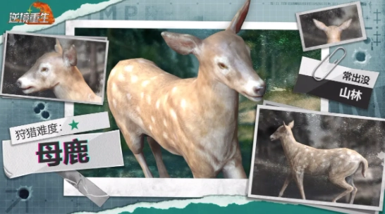 逆境重生中,母鹿的出没位置通常在山林之中。与此同时,山林里还存在着大量较为基础的初级食草动物。在刚开始的时候,不妨先挑选这类简单的动物进行狩猎。而当拥有工具和武器后,便能够去挑战难度更高的动物,如此一来,所能获取的资源也会相对更多。