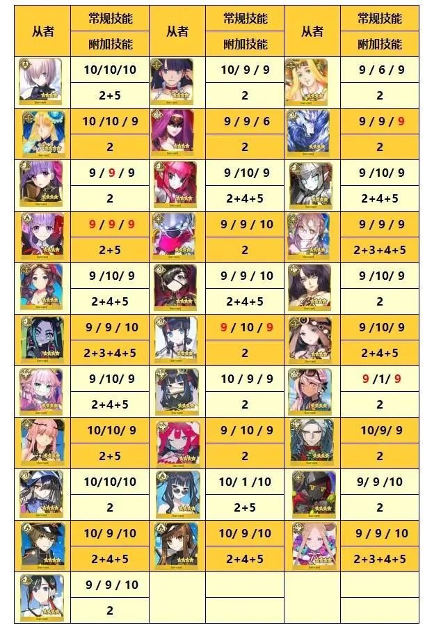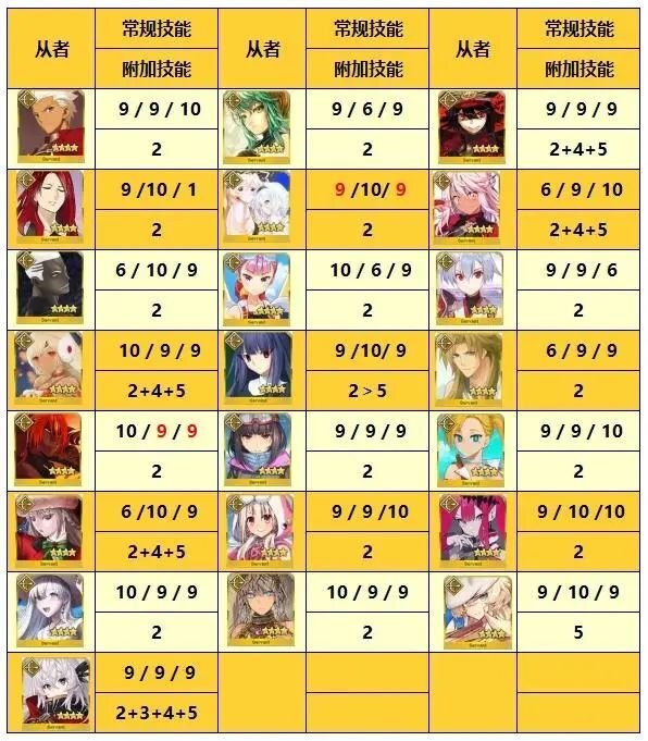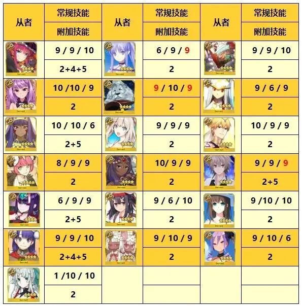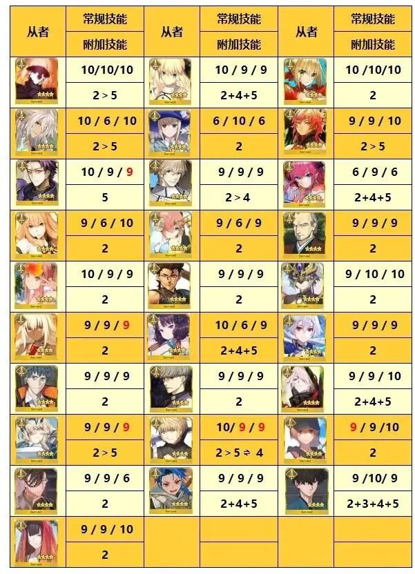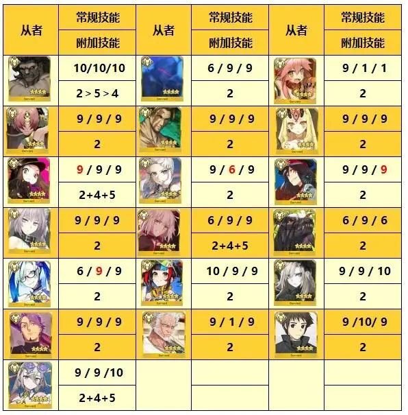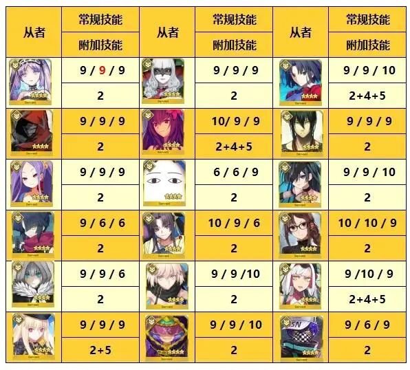 国服在九周年时也实装了追加4、5技能,这对五星从者而言算是优势较大的技能;不过对于四星从者来说,尽管牵绊对应的从者币有所提升,但可开启的追加技能依然不多。