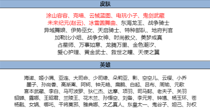 二、七夕精选皮肤和英雄限免