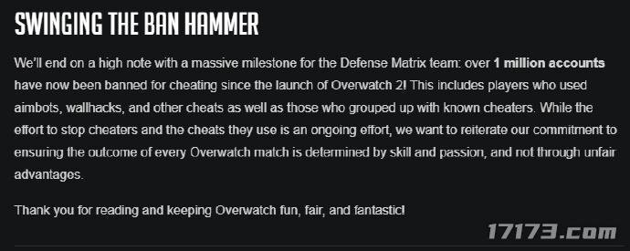 在这篇官方博客里,暴雪清晰地表明了维护游戏公平的坚定决心:“尽管针对作弊者及其所用作弊手段的打击行动一直在持续开展,但我们想再次强调自己的承诺——要保证每一场《守望先锋》比赛的结果,都是由玩家的技术与热爱来决定,而非依靠不公平的优势。”