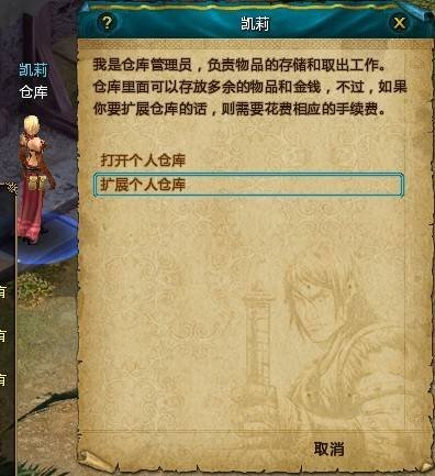 初始仓库空间不够存放您的收藏?别担心!您可以在仓库NPC那里轻松扩展个人仓库的容量,所有宝藏都能得到妥善保管。