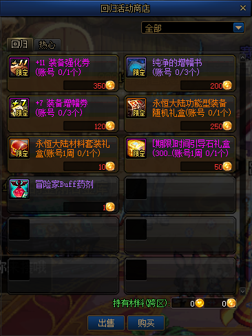 回归玩家还能享受到专属兑换商店这一福利,他们可以用回归币换取各类丰厚奖励,像强化卷、增幅书、增幅卷等都在兑换列表中。其中,三本增幅书和三本增幅卷尤为实用,能助力玩家更快跟上当前版本进度。