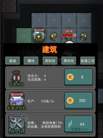 当你拥有更多的钱之后呢,就能建造更多的武器啦,自然也能快速击倒猛鬼。与此同时,还能再建造一些黑科技——高科技——蜜獾工坊里面的装备。