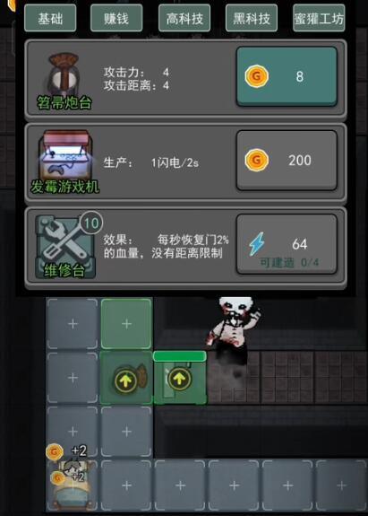 接下来就继续攒钱,把床升级成精装床,这样就能拿到三十二金币的利息。这个等级的门和床应该能扛住猛鬼的攻击。要是能抵挡住,就可以建造发霉的游戏机来生产电力,建议先造四台再接着升级,最好升到二级,之后也能建铜矿了,有了电力就能继续升级铜矿。
