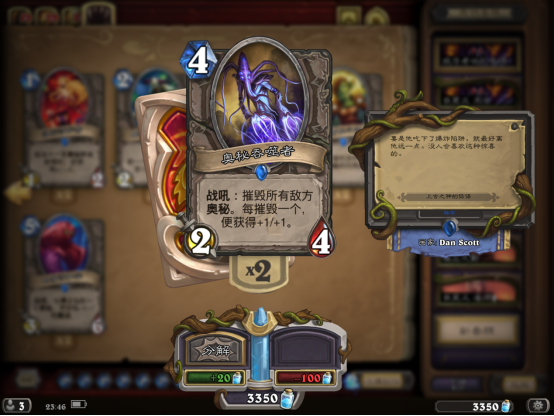呓语宝典能给我们提供一张法术牌,当手牌都打光时可以补充手牌,这样就不用担心手牌不足的问题了。(小编之前试过抽到一张炎爆呢!)