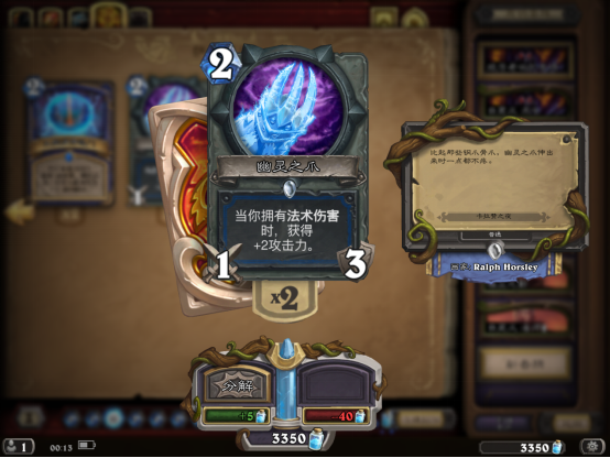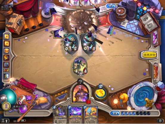 三、小编大概在8费的时候就成功击败了boss,核心思路就是把高伤害法术都往boss脸上招呼,但也得记得适时解场。击败boss后,我们能拿到两张新卡牌,一张是法师的麦迪文的男仆,另一张是萨满的幽灵之爪。