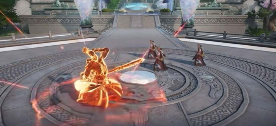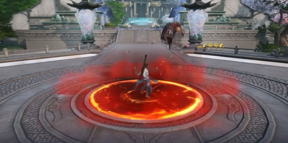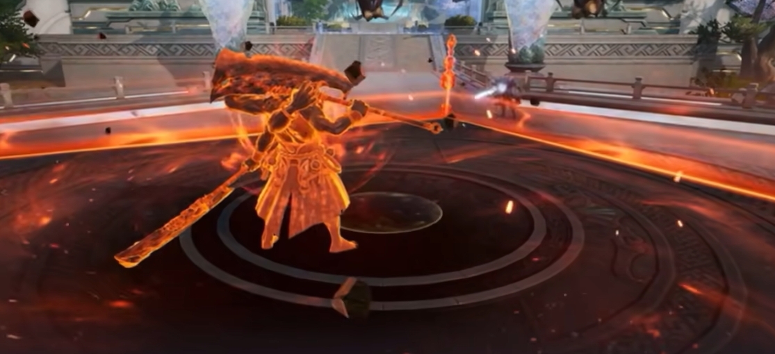 当鬼王职业在战斗中的怒气值满100时,就能释放状态技能“明王降世”,角色会随即变身为体型更为庞大的明王形态,而原本的4个招式技能也会在该形态下呈现全新的效果。具体来看,一技能是“天魔舞”,角色通过自身旋转持续对周围敌人发动多段攻击;二技能“凌霄碎魂”则会触发范围更广、伤害更强的下落式攻击。