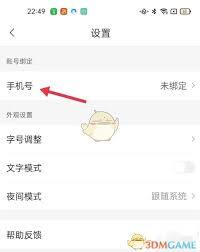 进入账号管理相关页面后,您会看到“手机号”这一项,点击即可进入手机号绑定页面。