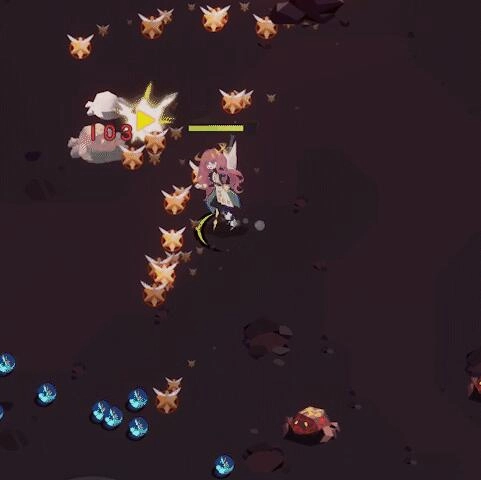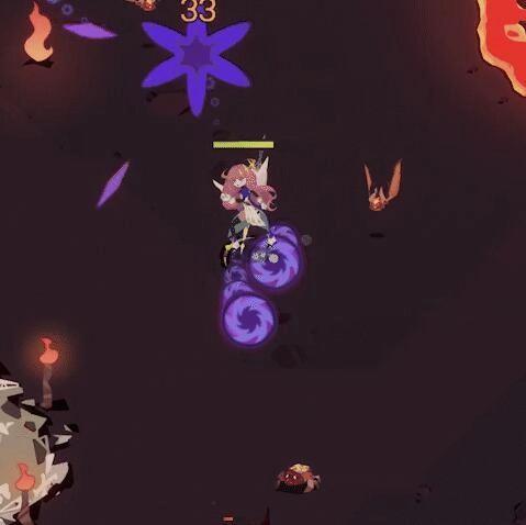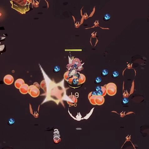 效果:角色持续生成若干只萤火虫,这些萤火虫会追踪附近的敌人。一旦萤火虫触碰到敌人,便会引发小范围的爆炸,并同时产生击退效果。