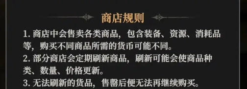 1. 商店里会出售各种各样的商品,像装备、资源、消耗品等都有,而且购买不同商品所需要的货币或许会不一样。