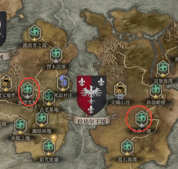 每一章都会出现一个带有流浪商人的地图。第一章的流浪商人位于惊悸荒野,第二章的流浪商人则在失落小镇。